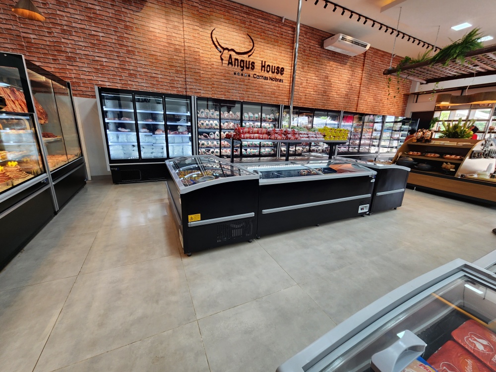 Angus House, é uma boutique de carnes de alto padrão. Este projeto foi idealizado junto com nosso parceiro INOVA SOLUÇÕES, para aqueles clientes que procuram corte de carne do dia a dia e para aqueles que procuram carnes premium. O projeto conta com expositores de açougue com gancheira, prateleiras e alto, além das ilhas de congelado, expositores verticais para congelados e bebidas.
